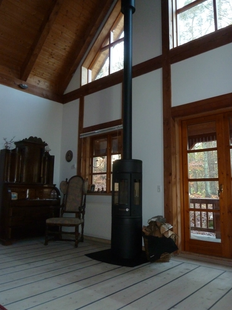 Morsø 7990 på høj sokkel og med varmelagring
